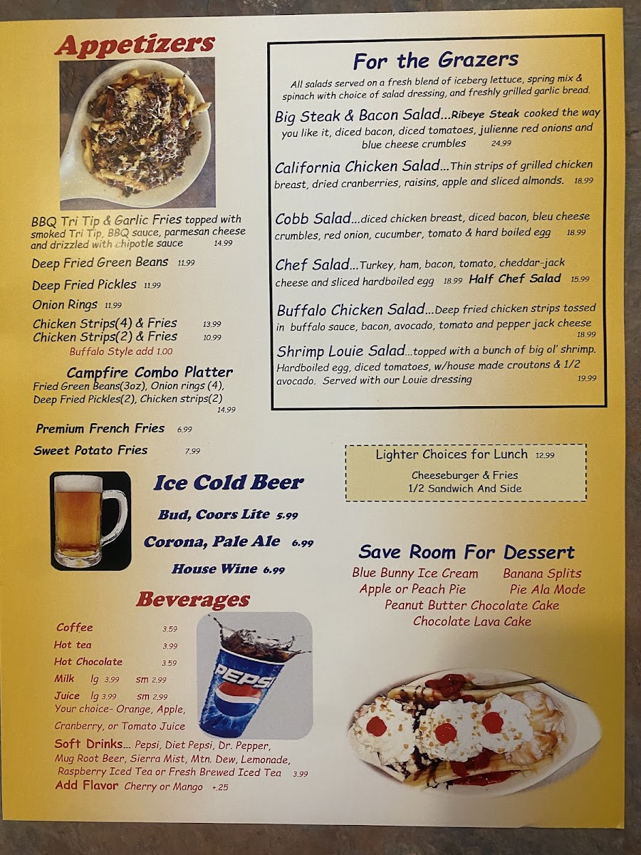 At Rockin R, savor the BBQ Tri Tip and Garlic Fries — a showstopper featuring smoked tri tip drizzled with chipotle sauce. For a lighthearted gathering, dive into the Campfire Combo Platter, perfect for sharing. Salad lovers will enjoy the Big Steak & Bacon Salad and the Cobb Salad, both crafted with fresh ingredients.